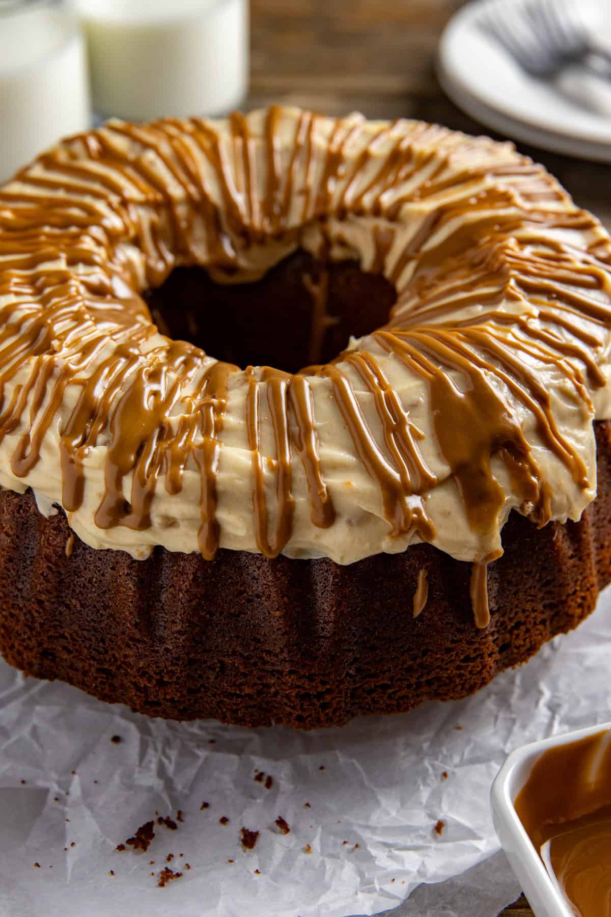 - And that little drizzle of warm cookie butter on top? It seeps right down into the curves of the cake and makes it taste even better the next day.
