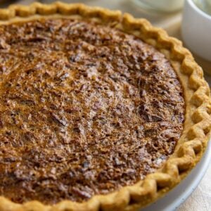 This old-fashioned pecan pie is a classic southern dessert. It's sweet, buttery, and loaded with crispy pecans in every bite. Uses a pre-made deep-dish pie crust for a time-saving shortcut.