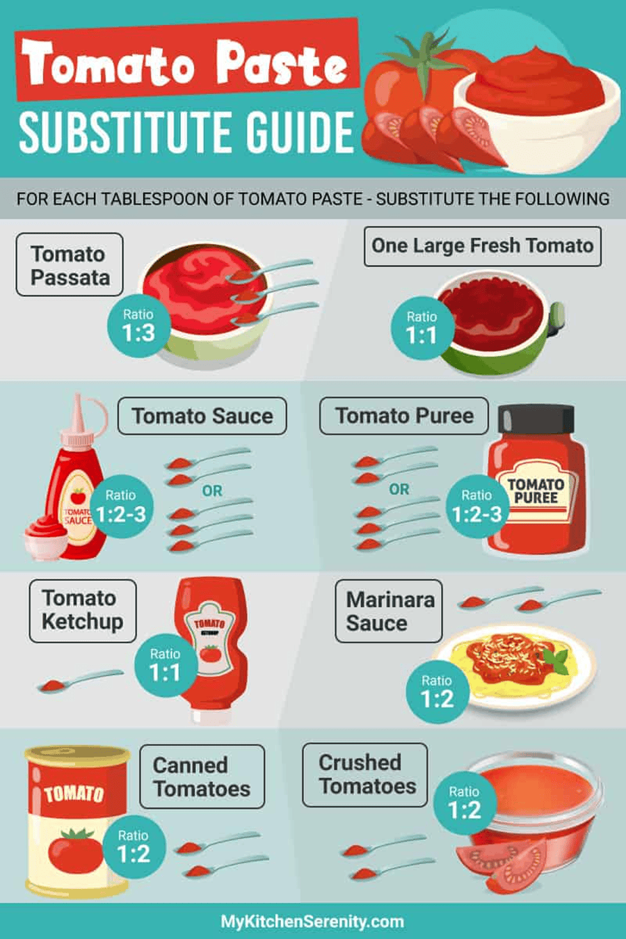 - ⚖️ Substitution Ratio: 1 large tomato = 1 tablespoon tomato paste